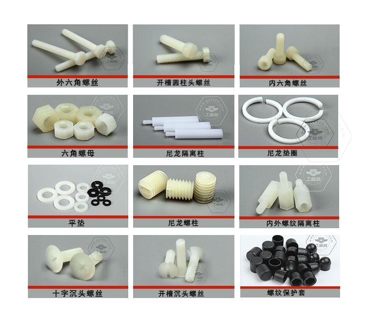 塑料外六角頭螺絲、塑料開槽盤頭螺絲、塑料開槽沉頭螺絲、塑料內(nèi)六角圓柱頭螺絲、塑料開槽圓柱頭螺絲、尼龍開槽滾花螺絲、尼龍開槽平端止付螺絲、尼龍六角螺母、尼龍平墊、尼龍十字沉頭螺絲、塑料十字盤頭螺絲、塑料內(nèi)梅花圓柱頭螺絲、塑料尼龍外六角頭螺絲、尼龍十字盤頭螺絲、尼龍開槽盤頭螺絲、塑料蓋型螺母、塑料蝶形螺母、塑料蝶形螺絲、塑料蓋和塞、塑料管塞等……