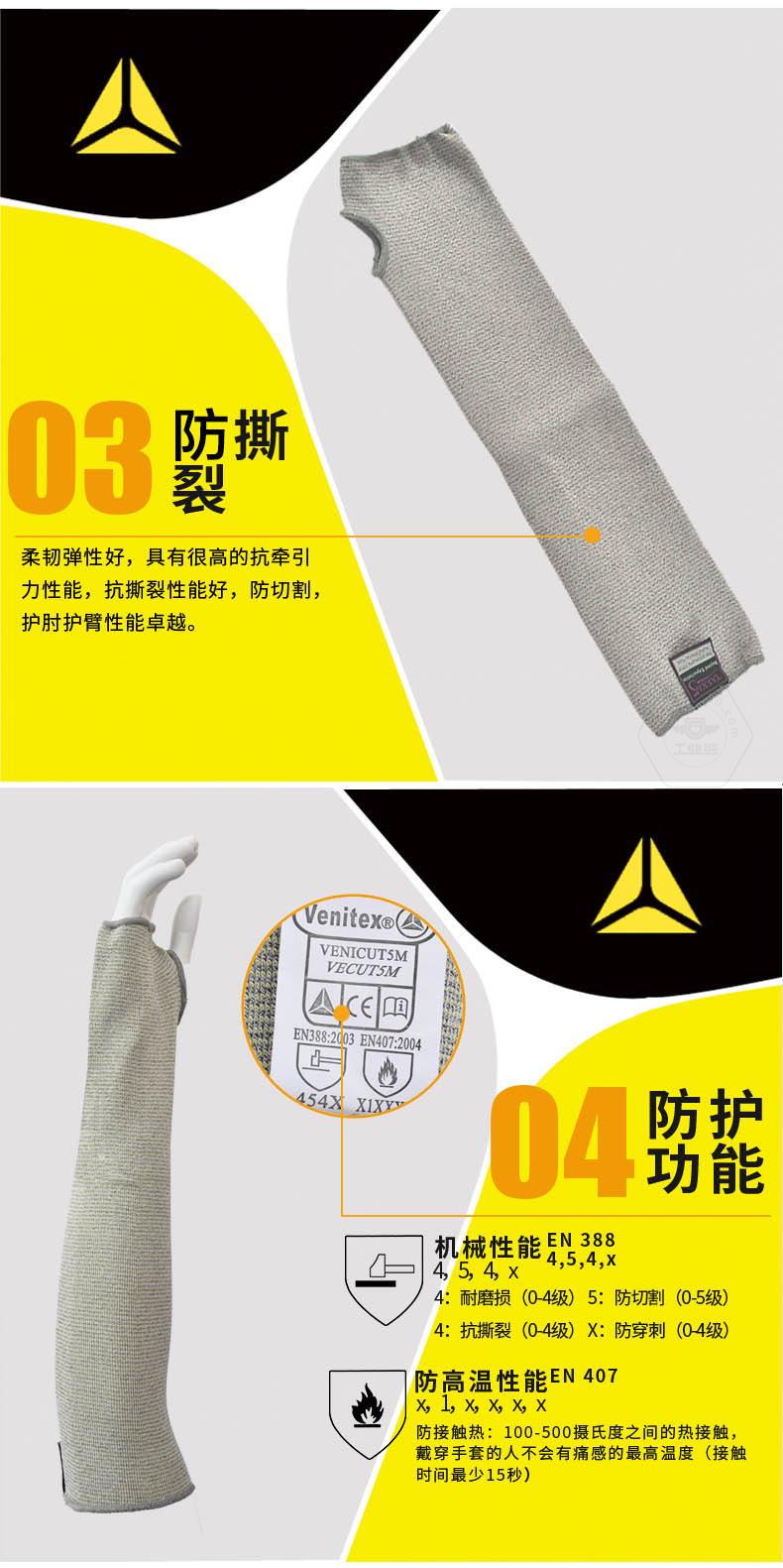 商品名稱:代爾塔 防切割套袖 隔熱防割手套工作勞保手套 耐磨抗撕裂耐高溫工業(yè)級針織高強(qiáng)度202013 淺灰色 一只(不分左右手)